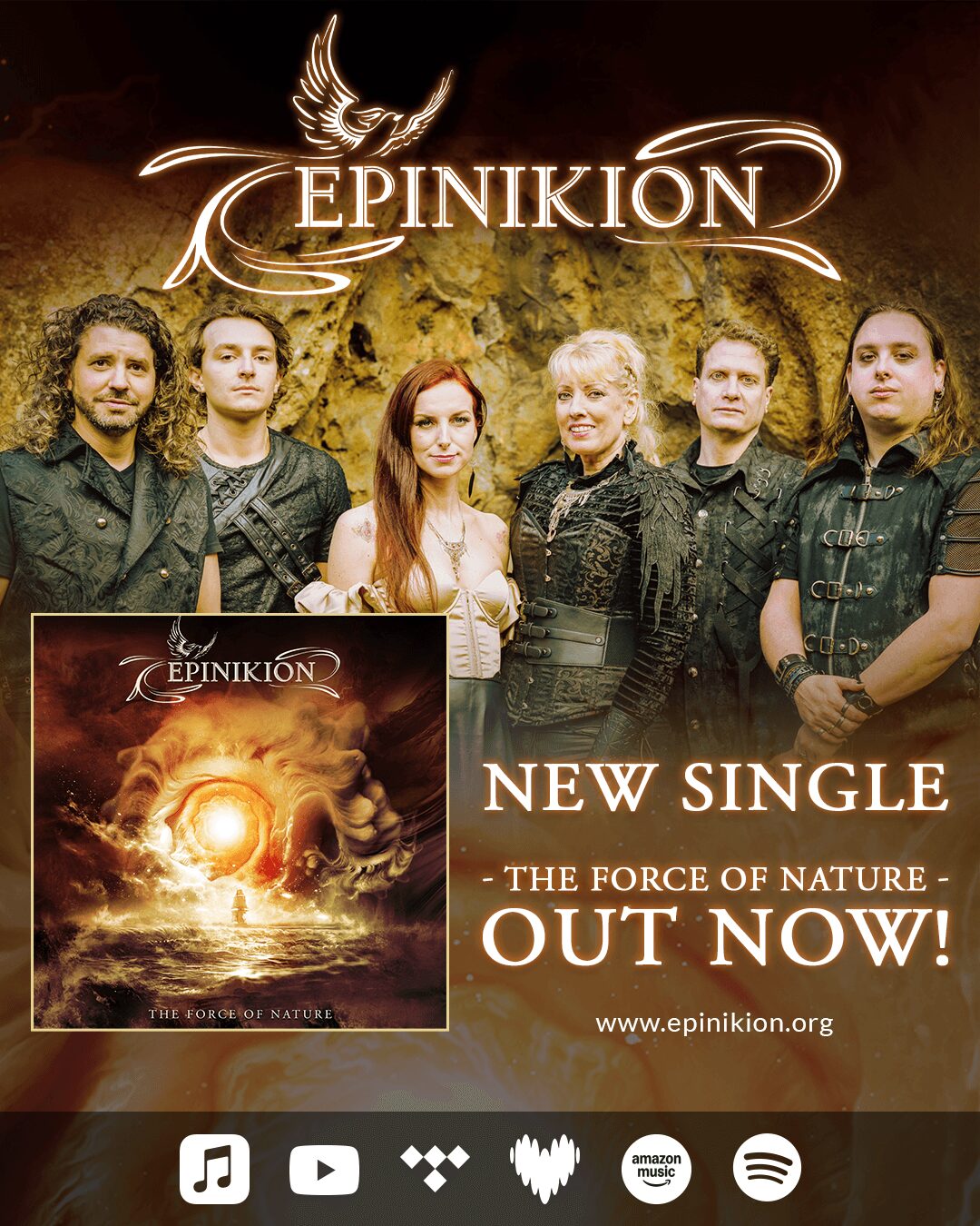 Epinikion is ready to take the stage by storm with their energetic album The Force of Nature, an emotional statement full of power and perseverance. The music reflects human nature as an elemental force of nature itself. The title track and first single of “The Force of Nature” is available on all streaming platforms, accompanied by an official videoclip: https://youtu.be/2_kPfXj824Y.